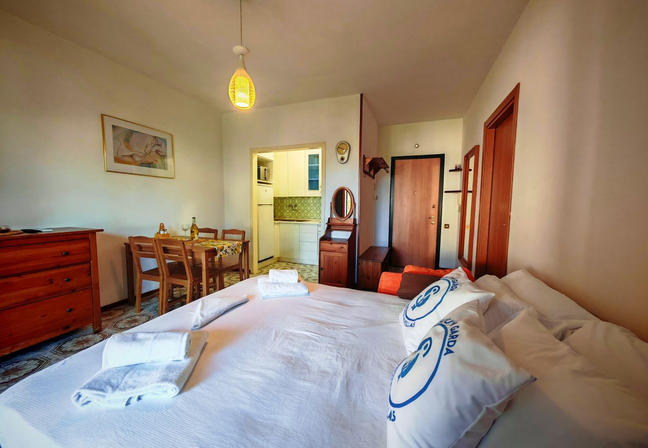 Appartamento in residence a Peschiera Del Garda con una camera matrimoniale e un divano letto doppio in soggiorno. L’alloggio si trova al primo piano rialzato e dispone di un balcone arredato con vista sul giardino condominiale. La cucina indipendente, a induzione, è attrezzata con frigorifero, microonde, stoviglie/posate, utensili da cucina e bollitore.