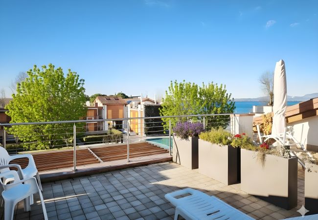 Swan Bay ist eine wunderschöne 100 m² große Wohnung in Castelnuovo del Garda, die ein Doppelzimmer und ein Dachgeschosszimmer mit einem Doppelbett und zwei Einzelbetten verfügt: Es kann daher bis zu 6 Personen beherbergen. Die Küche ist mit allen notwendigen Haushaltsgeräten ausgestattet, um maximalen Komfort zu bieten: Kühlschrank, Induktionsherd, Backofen, Mikrowelle und Wasserkocher. Es gibt 2 herrliche Badezimmer (eines im ersten Stock und eines im zweiten Dachgeschossstock), eines davon mit Waschmaschine. Nicht zu vernachlässigen sind die herrlichen Außenbereiche: die große seeblickende Terrasse und der Gemeinschaftspool. Die Anwesenheit von Heizung und Klimaanlage macht Swan Bay zur idealen Unterkunft für Urlaube zu jeder Jahreszeit. WLAN inklusive.