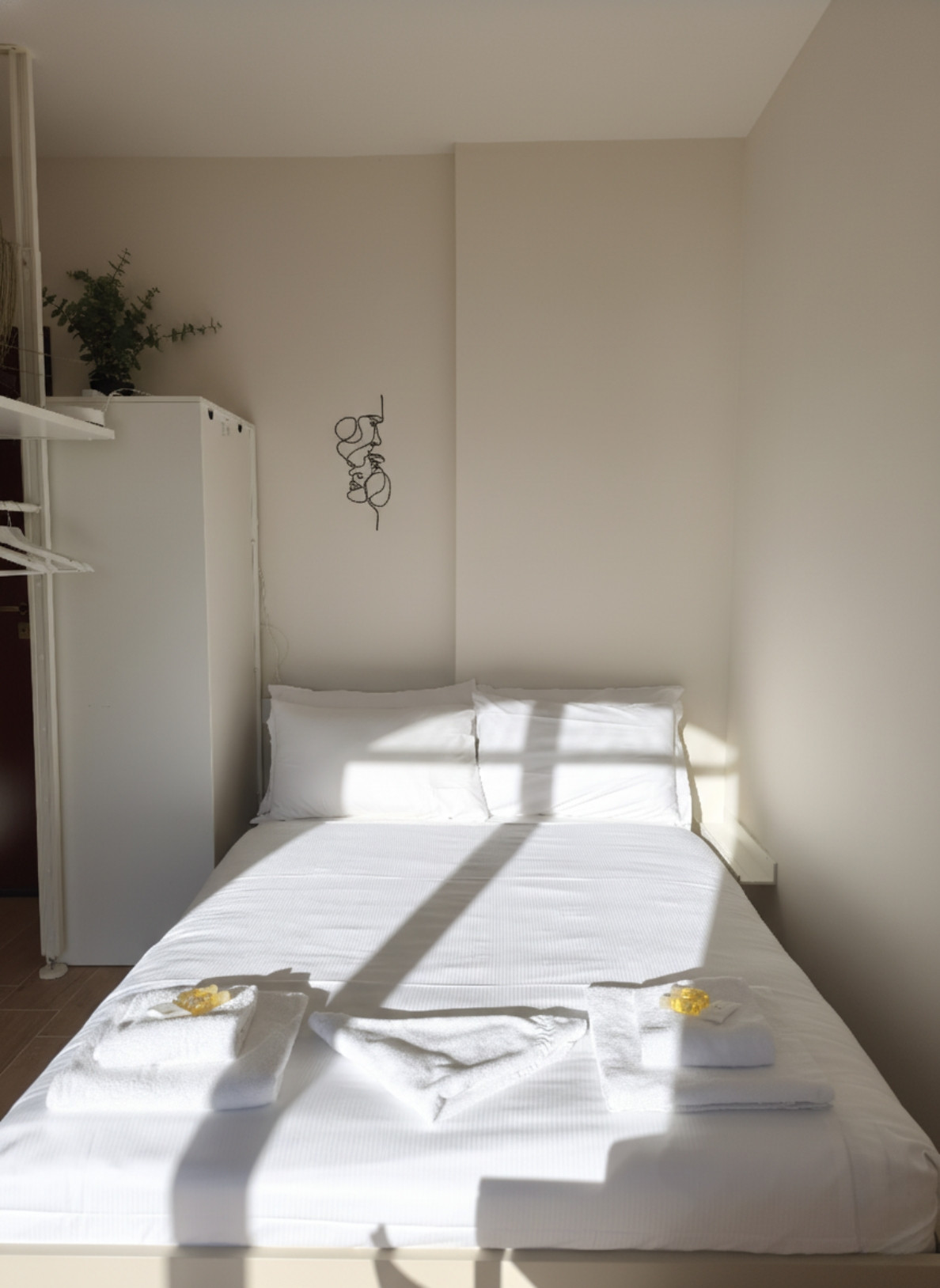 Das Doppelschlafzimmer ist einladend und gepflegt, mit einem bequemen Doppelbett, das erholsamen Schlaf garantiert. Die Umgebung wird durch gut organisierte Schränke und Stauraum aufgewertet.