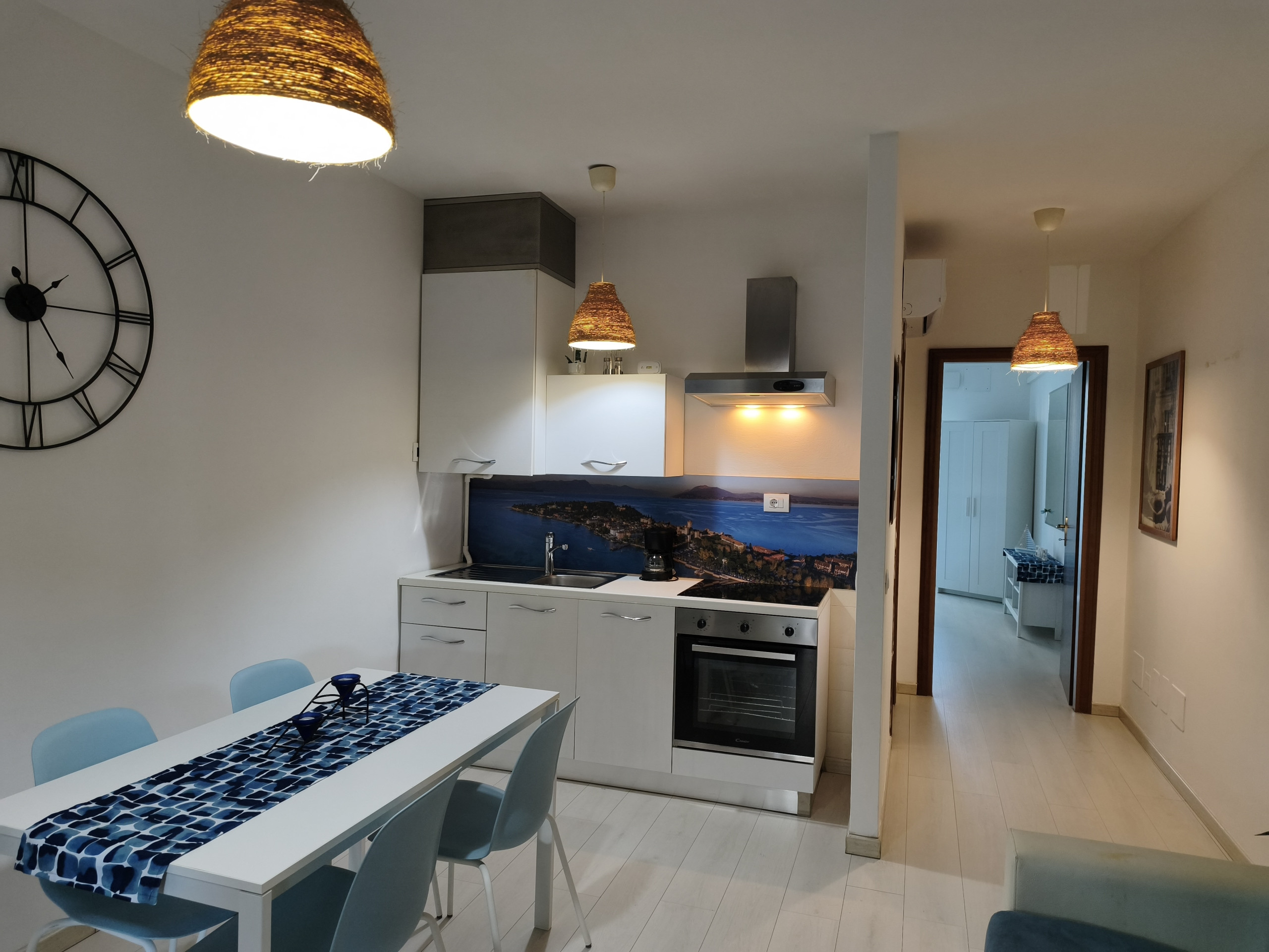 Der Pluspunkt der Wohnung ist die 10 m² große Außenterrasse, perfekt, um einen Aperitif bei Sonnenuntergang zu genießen oder sich nach einem Tag voller Ausflüge zu entspannen. Die Lage ist strategisch: nur 600 Meter vom Strand von Colombare und im Zentrum von Sirmione entfernt, bietet sie einen einfachen Zugang zu Restaurants, Bars und lokalen Sehenswürdigkeiten.