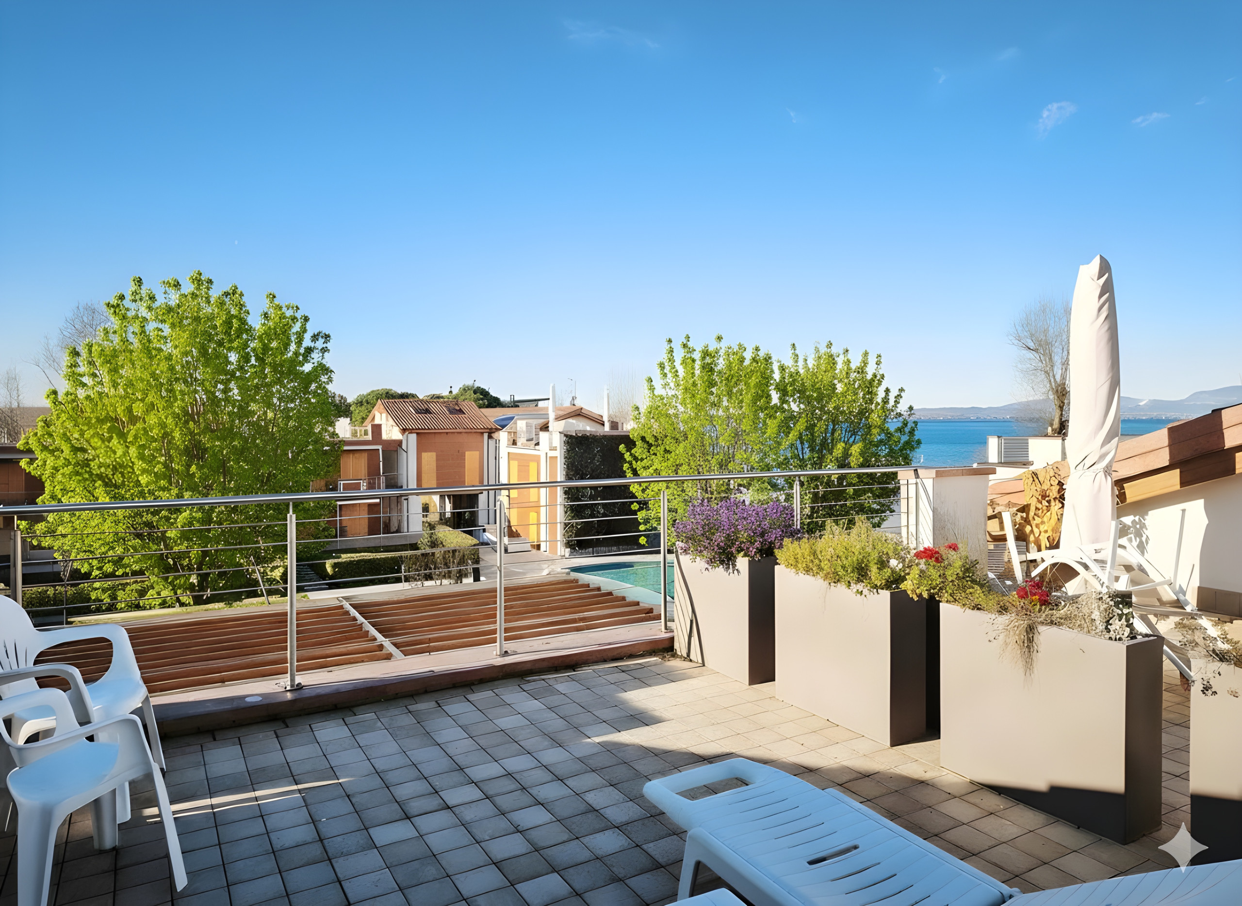 Maison Cecile is a charming lakeside villa of 80 m2 in Castelnuovo del Garda, a perfectly strategic location 2 km from Peschiera del Garda and just 100 m from Gardaland. It can accommodate up to 6 people: it features a double bedroom, a twin room with separate beds, and a two-seater sofa bed.