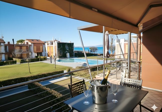 In addition to the welcoming living area with kitchen and comfortable rooms, which make the interior spaces perfect for any group or family, the accommodation boasts a wonderful lake-view garden that leads to the condominium swimming pool. Moreover, a garage and 2 parking spaces are included. Beauty and convenience just a step away from the lake.