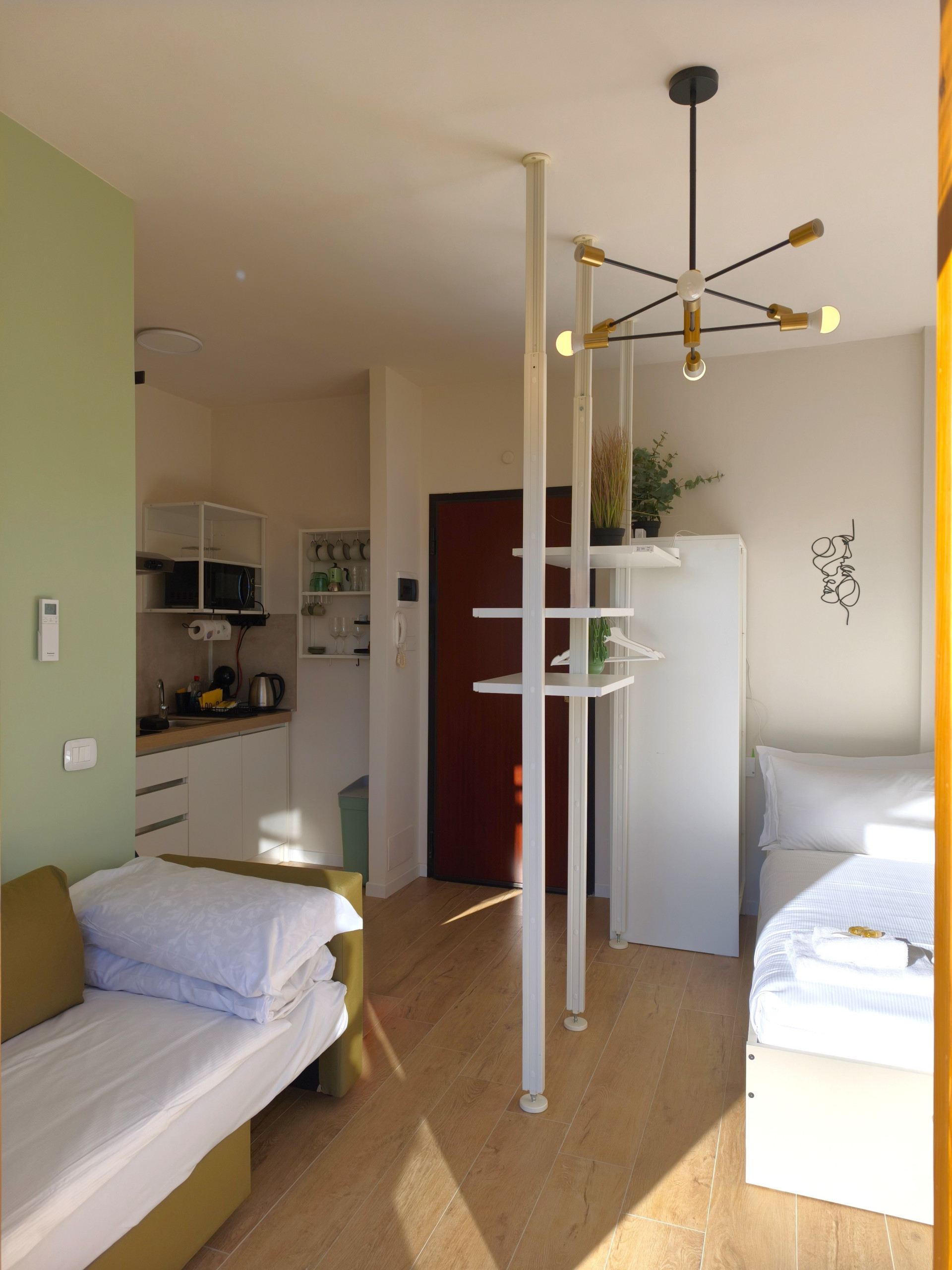 The apartment in Peschiera del Garda has 1 bedrooms and has capacity for 3 people. The apartment is tastefully-furnished, is modern, and is 30 m². The house is situated in a residential neighborhood in the center of the city. The accommodation is equipped with the following items: internet (Wi-Fi), hair dryer, balcony, heat pump, air conditioning throughout the house, open-air parking near the building, 1 TV. In the induction independent kitchen, refrigerator, microwave, freezer, dishwasher, dishes/cutlery, kitchen utensils, coffee machine, kettle, juicer and plates and bowls are provided.