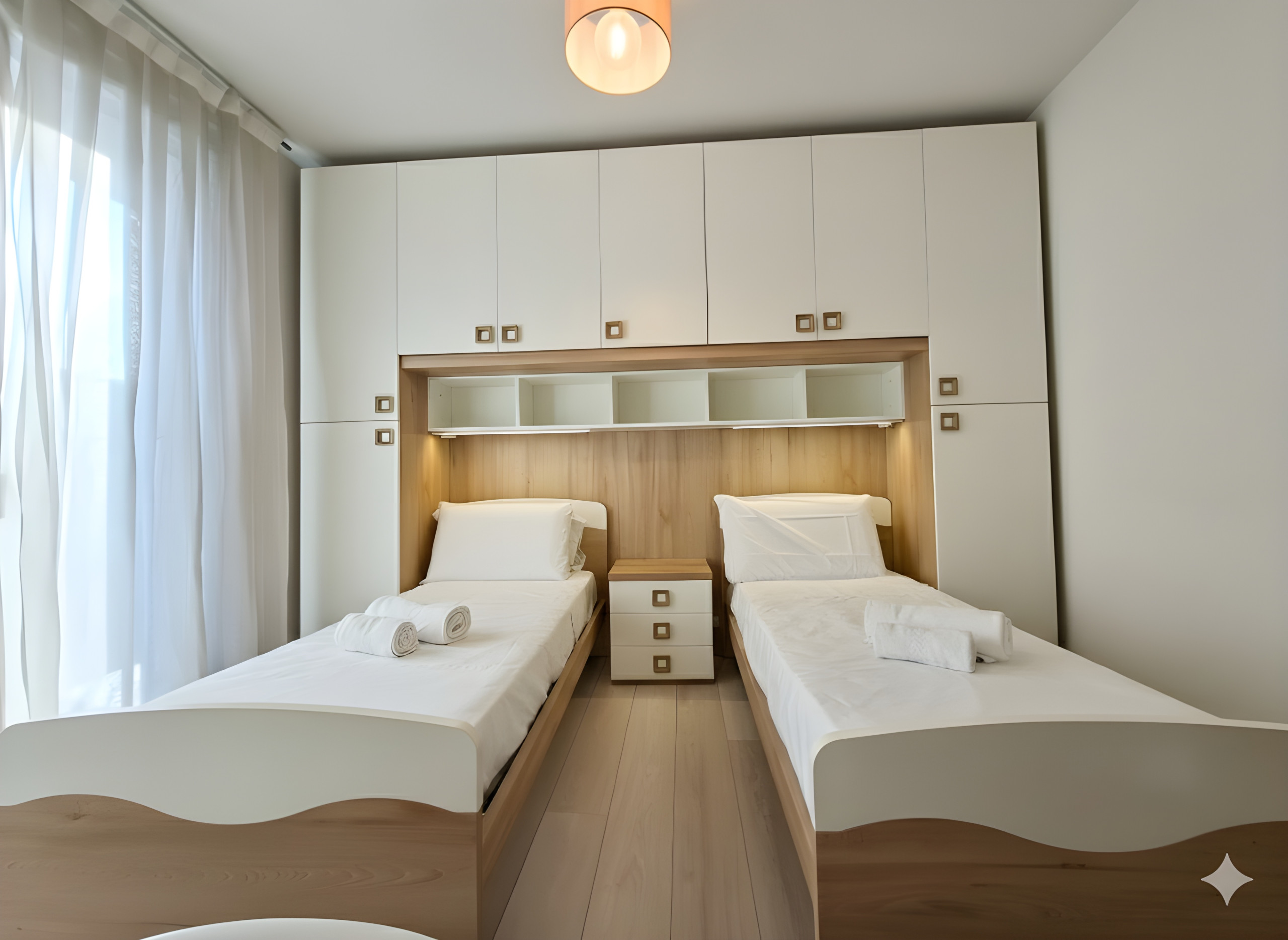 Ideal for families and large groups up to 6 people, the apartment offers 2 large double bedrooms and a double sofa bed in the living area.