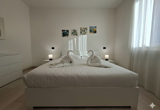 Elegant and spacious 120 m² apartment located in Peschiera del Garda, ideal for families or groups up to 6 people. The accommodation features 3 comfortable bedrooms, bright spaces furnished in a modern style. It is equipped with air conditioning in all rooms, free Wi-Fi, two televisions, washing machine, hairdryer and independent gas boiler. The house is fenced and offers terrace and balconies, perfect for outdoor relaxation moments, as well as private parking on site. The independent induction kitchen is fully equipped with refrigerator, freezer, oven, microwave, dishwasher, crockery, utensils, coffee maker and kettle. Ideal solution for a comfortable stay near Lake Garda.
